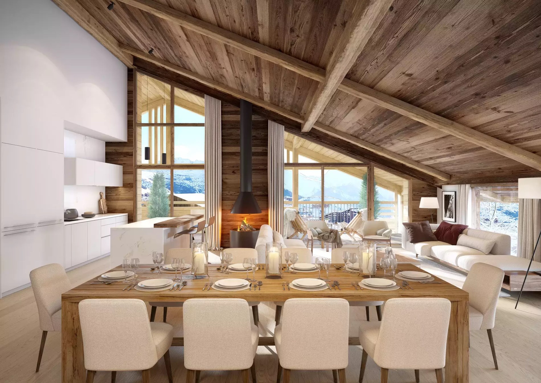 Chalets et appartements de prestige se distinguent par des lignes élégantes, des volumes généreux et des matériaux nobles soigneusement sélectionnés : bois massif, pierre naturelle, parements minéraux, larges ouvertures sur les panoramas alpins, etc.