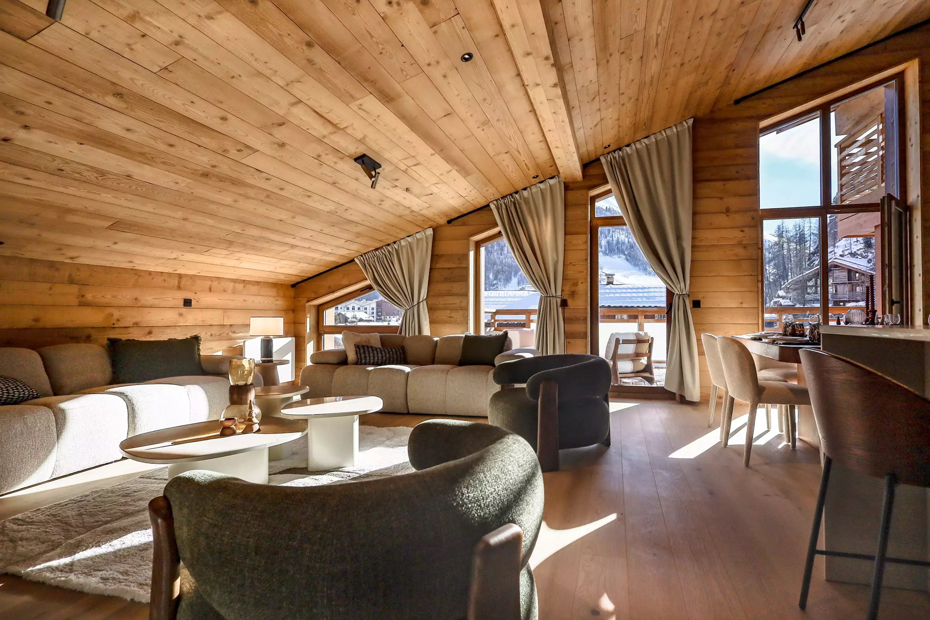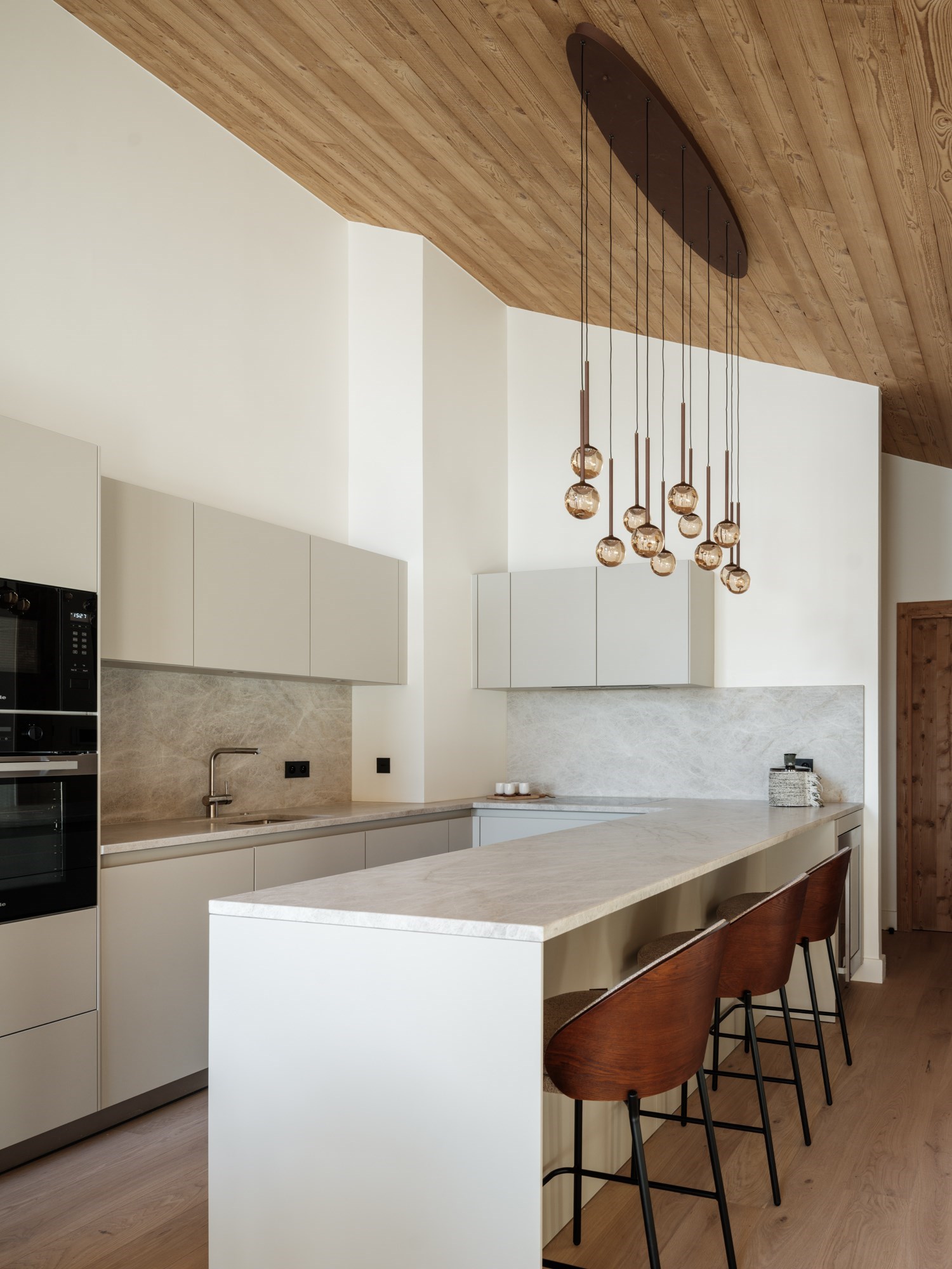 Ici, l’espace semble avoir été sculpté afin de vous offrir un maximum de fonctionnalité et de rangements, si précieux en montagne.