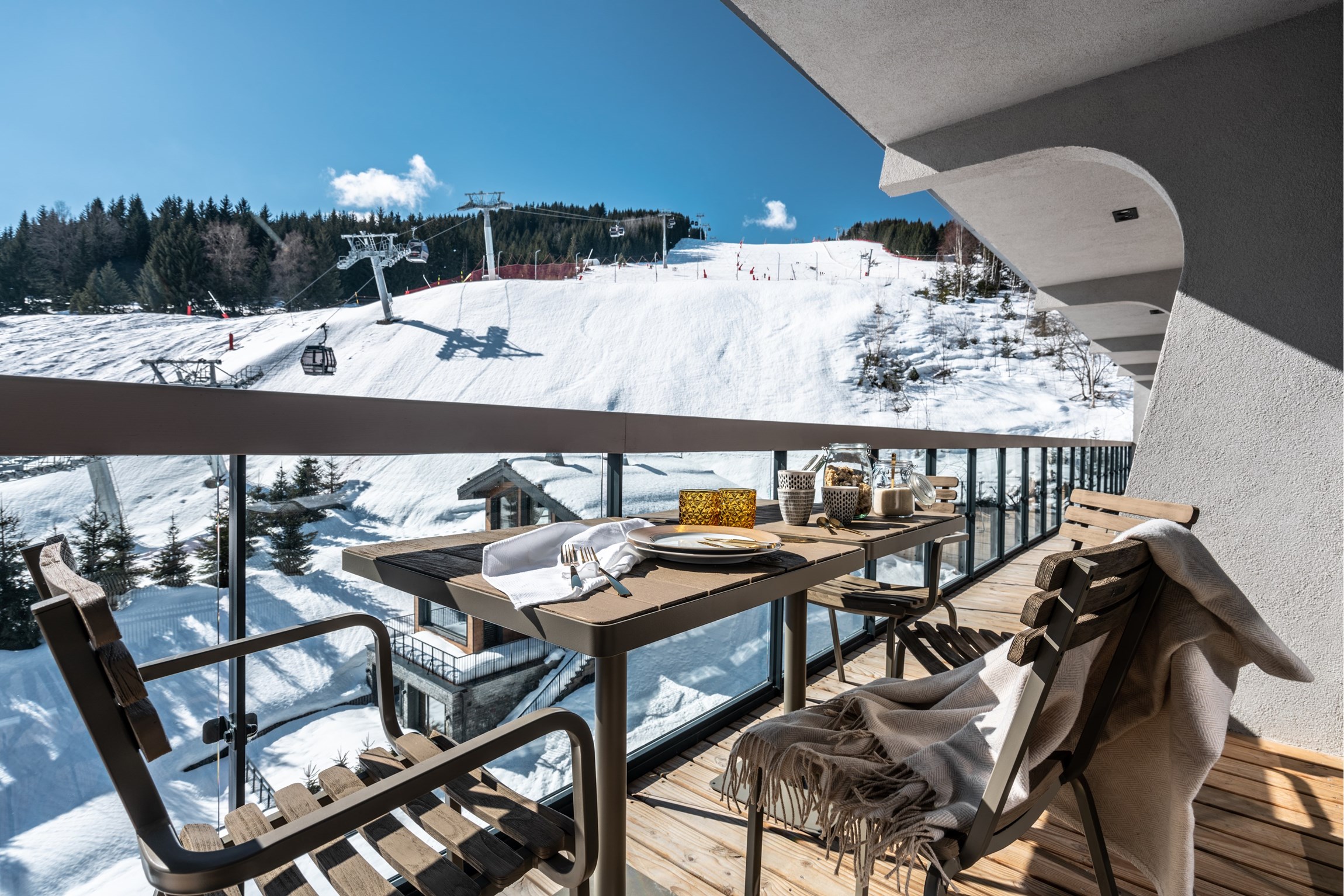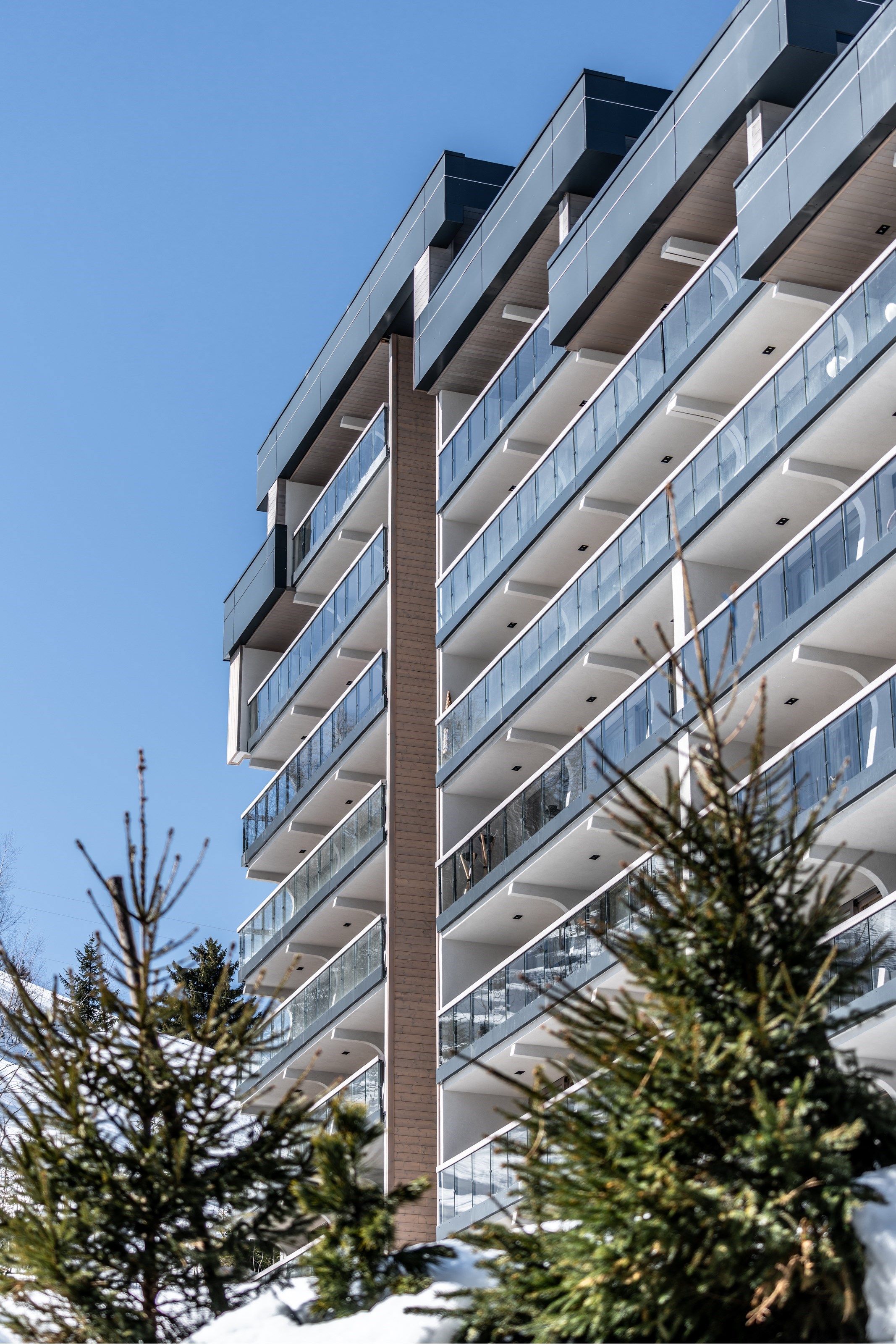 Chaque logement bénéficiait d’une vue d’exception, largement cadrée par de vastes baies, offrant un dialogue permanent avec l’environnement naturel. Un coin montagne intérieur venait enrichir les espaces de vie, apportant fonctionnalité et convivialité, tandis que les terrasses extérieures prolongeaient les appartements vers le paysage.